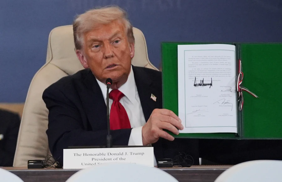 Trump on Monday signed the peace declaration in Egypt alongside Egyptian President Abdel Fattah El-Sisi, Qatari Emir Tamim bin Hamad Al-Thani, and Turkish President Recep Tayyip Erdoğan.